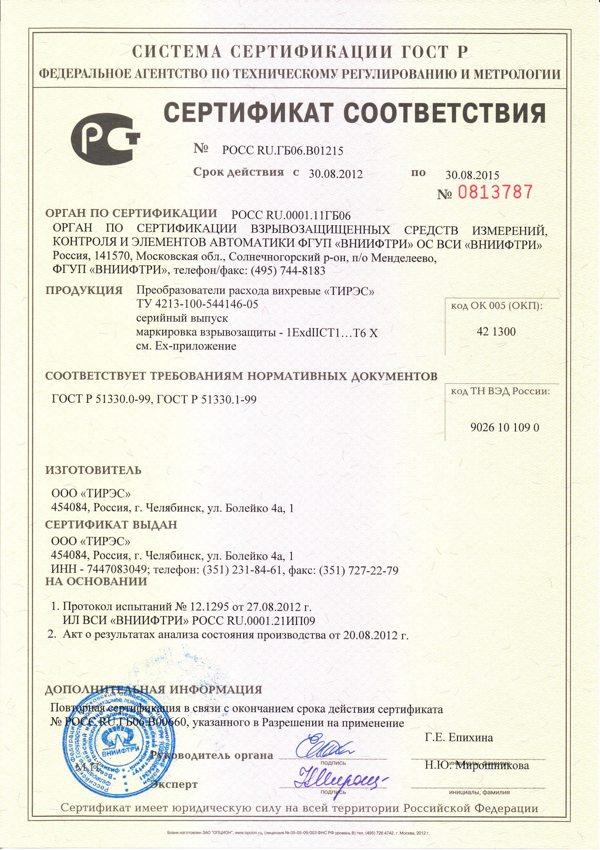 Применяется в составе узлов коммерческого и технологического учета. Имеется свой сертифицированный комплекс учета на базе расходомера ТИРЭС.